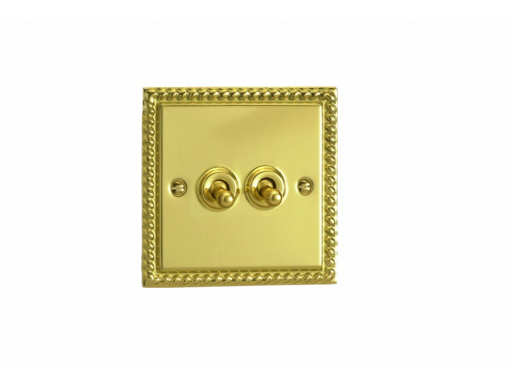 Páčkový vypínač TOGGLE - 2-modulový křížový (č.7) 10A 1-pólový KLASICKÉ - leštěná mosaz / mosazná páčka