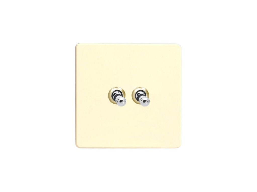 Páèkový vypínaè TOGGLE - 2-modulový schodiový (è.6); jednosmìrný (è.1) 10A 1-pólový BEZROUBKOVÉ - bílá èokoláda / chromové páèky