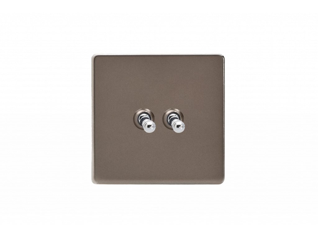Páèkový vypínaè TOGGLE - 2-modulový schodiový (è.6); jednosmìrný (è.1) 10A 1-pólový BEZROUBKOVÉ - cínová / chromové páèky