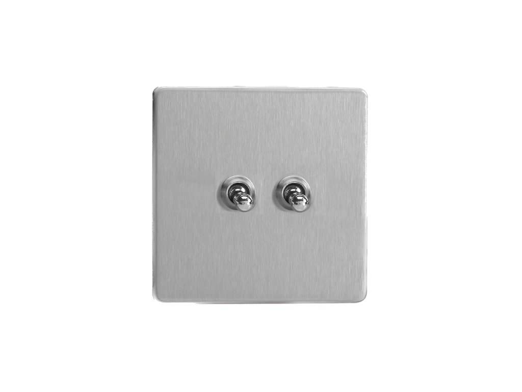 Páèkový vypínaè TOGGLE - 2-modulový schodiový (è.6); jednosmìrný (è.1) 10A 1-pólový BEZROUBKOVÉ - kartáèovaná ocel / chromová páèka