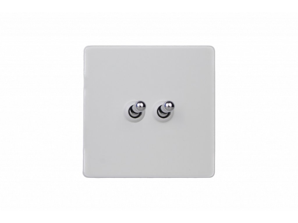 Páèkový vypínaè TOGGLE - 2-modulový schodiový (è.6); jednosmìrný (è.1) 10A 1-pólový BEZROUBKOVÉ - prémiová bílá / chromové páèky