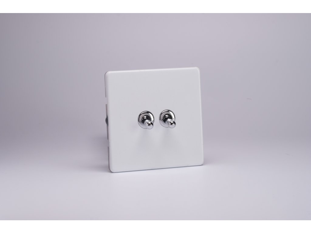 Páèkový vypínaè TOGGLE - 2-modulový schodiový (è.6); jednosmìrný (è.1) 10A 1-pólový BEZROUBKOVÉ - prémiová bílá / chromové páèky