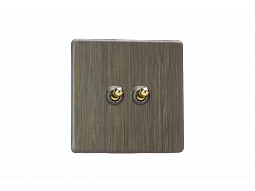 Páèkový vypínaè TOGGLE - 2-modulový schodiový (è.6); jednosmìrný (è.1) 10A 1-pólový BEZROUBKOVÉ - staroitná mosaz / mosaz