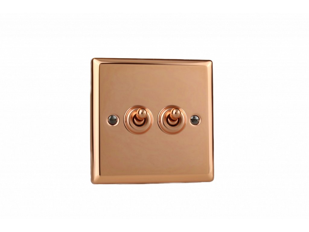 Páčkový vypínač TOGGLE - 2-modulový schodišťový (č.6); jednosměrný (č.1) 10A 1-pólový KLASICKÉ - leštěná měď / měděné páčka