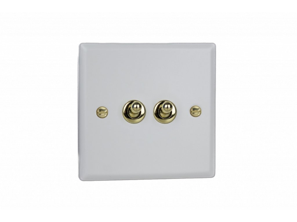 Páèkový vypínaè TOGGLE - 2-modulový schodiový (è.6); jednosmìrný (è.1) 10A 1-pólový KLASICKÉ - matnì bílá / letìná mosaz