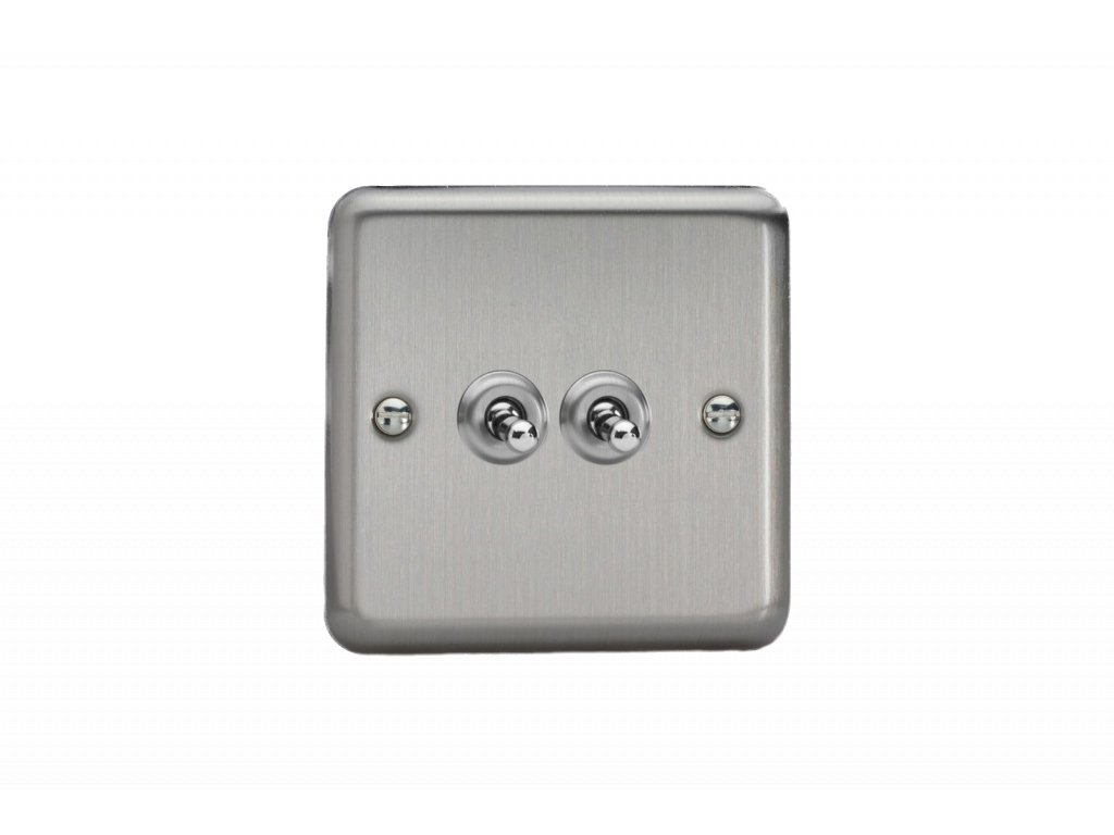 Páčkový vypínač TOGGLE - 2-modulový schodišťový (č.6); jednosměrný (č.1) 10A 1-pólový KLASICKÉ - matně chromová / chromové páčky
