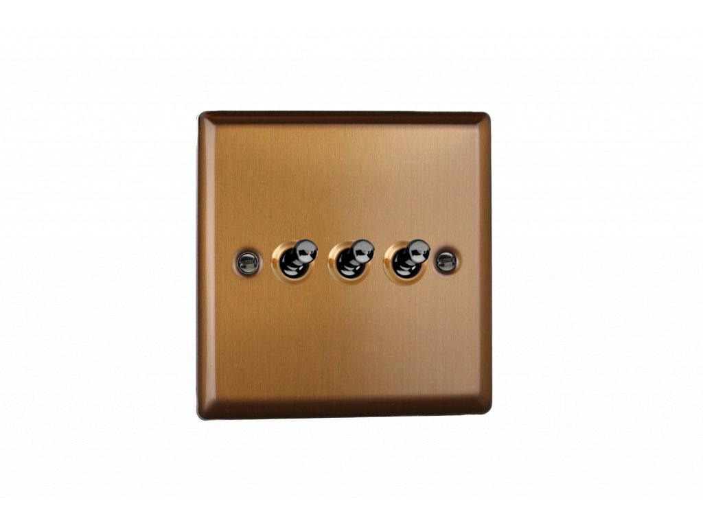 Páèkový vypínaè TOGGLE - 3-modulový schodiový (è.6); jednosmìrný (è.1) 10A 1-pólový KLASICKÉ - kartáèovaný bronz / èerné (lesklé) iridium