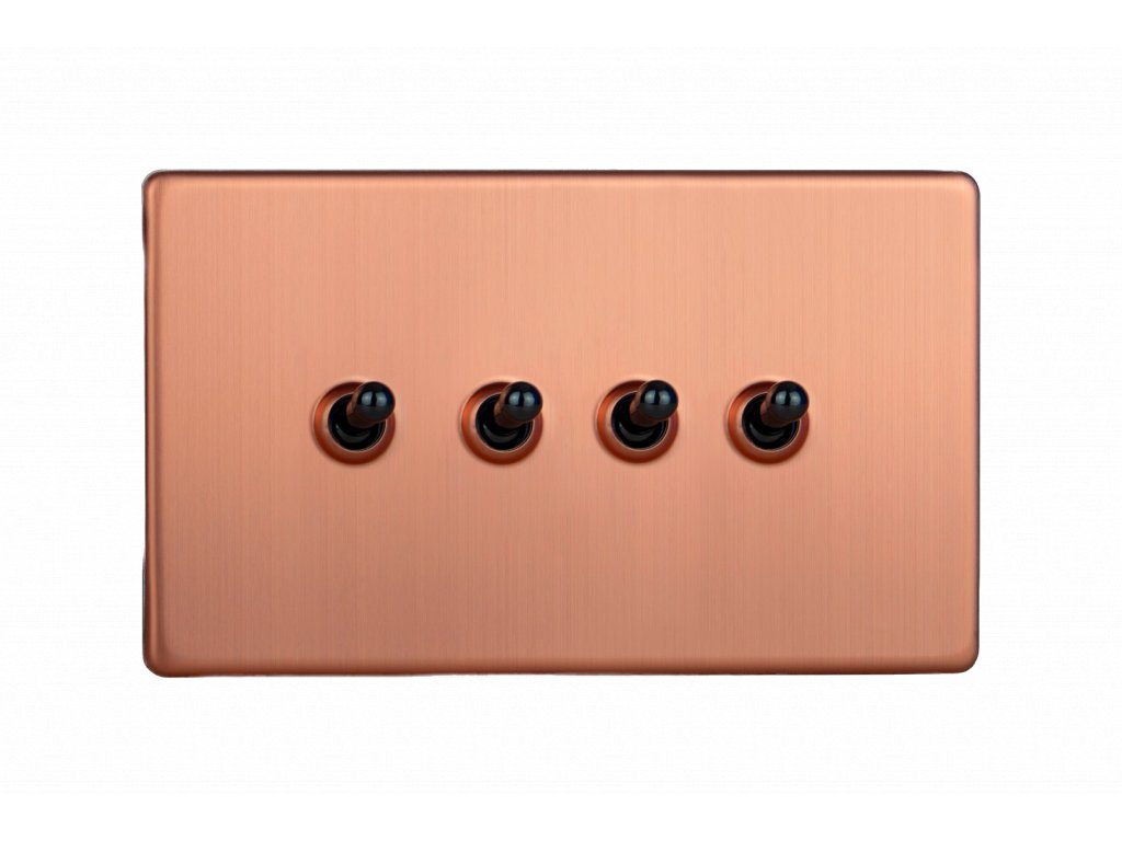 Páèkový vypínaè TOGGLE - 4-modulový schodiový (è.6); jednosmìrný (è.1) 10A 1-pólový BEZROUBKOVÉ - kartáèovaná mìï / èerné (lesklé) iridium