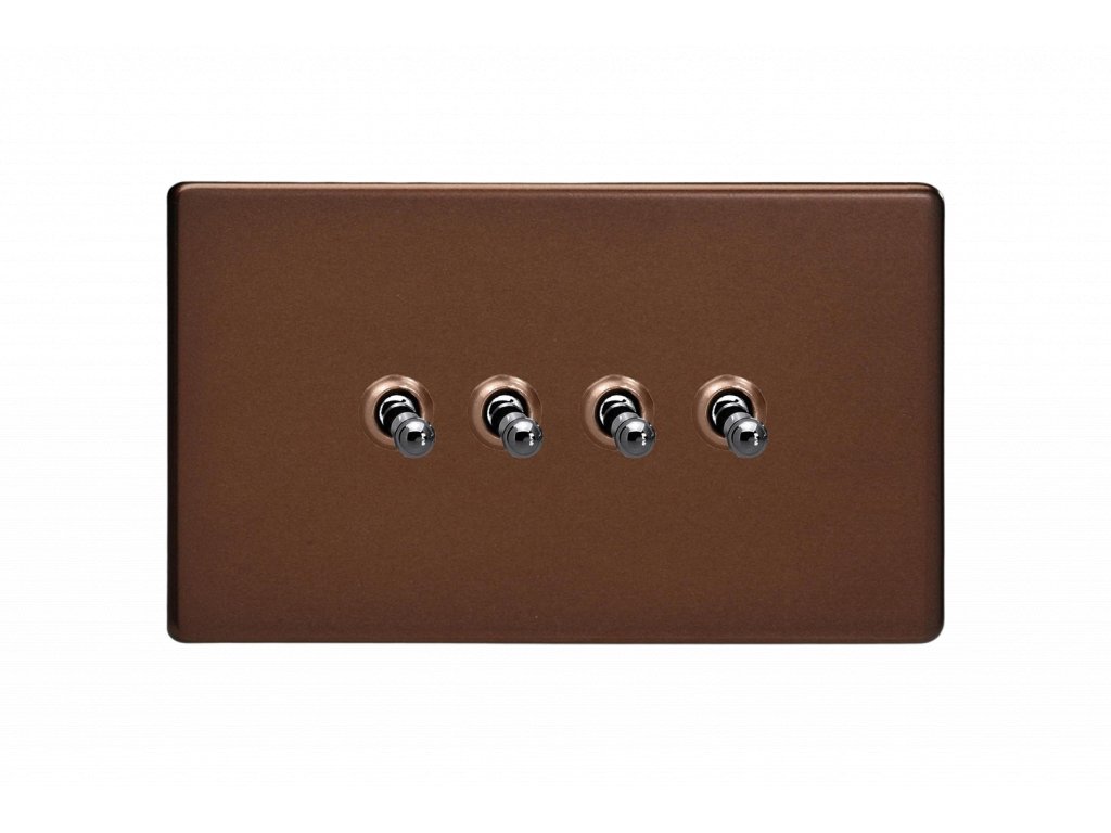 Páèkový vypínaè TOGGLE - 4-modulový schodiový (è.6); jednosmìrný (è.1) 10A 1-pólový BEZROUBKOVÉ - moka / èerné (lesklé) iridium