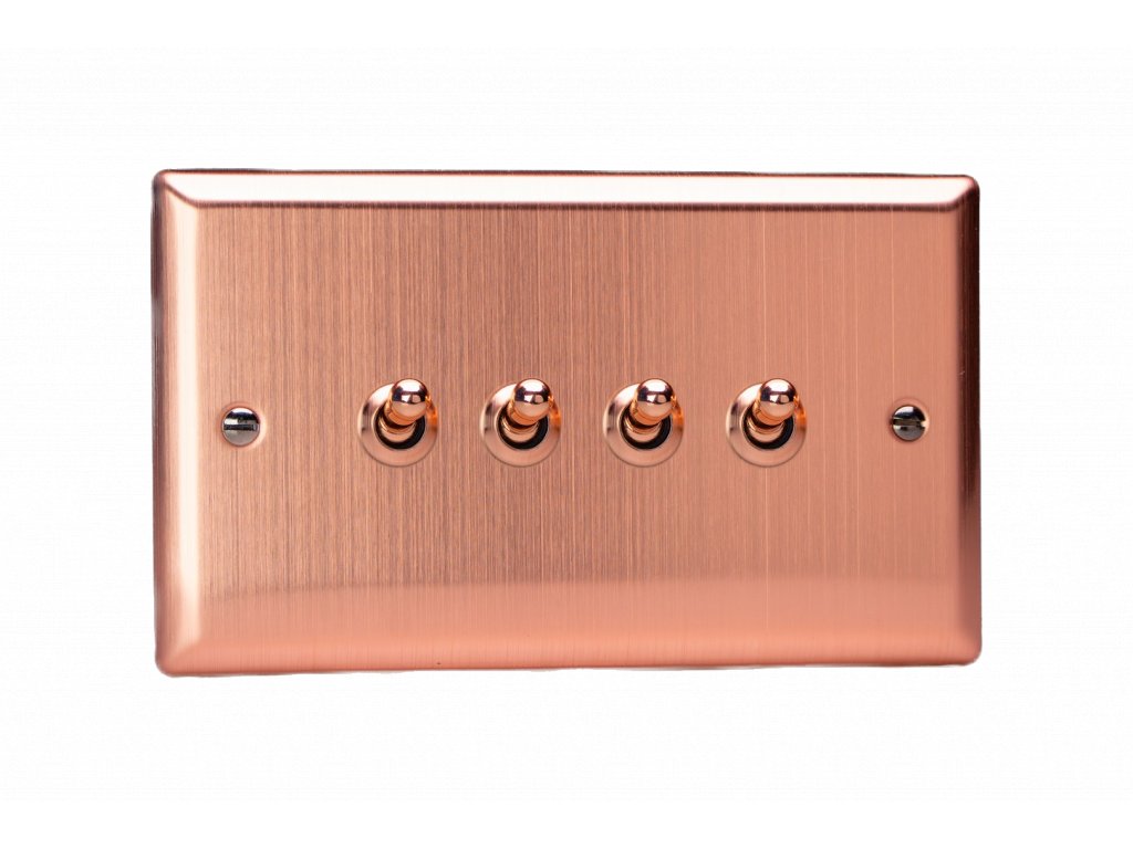 Páèkový vypínaè TOGGLE - 4-modulový schodiový (è.6); jednosmìrný (è.1) 10A 1-pólový KLASICKÉ - kartáèovaná mìï / mìdìné páèka