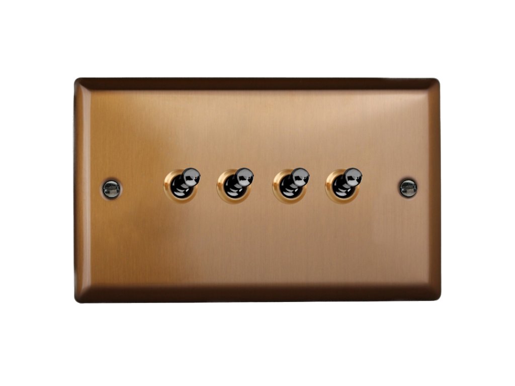 Páèkový vypínaè TOGGLE - 4-modulový schodiový (è.6); jednosmìrný (è.1) 10A 1-pólový KLASICKÉ - kartáèovaný bronz / èerné (lesklé) iridium