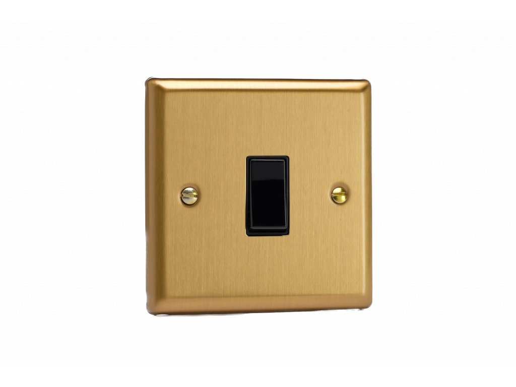 Kolébkový vypínač ROCKER - 1-modulový 10A 1-pólový zvonkový KLASICKÉ - kartáčovaná mosaz / černá kolébka