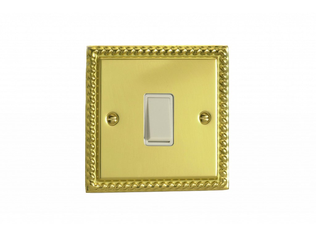 Kolébkový vypínač ROCKER - 1-modulový 10A 1-pólový zvonkový KLASICKÉ - leštěná mosaz / bílá kolébka
