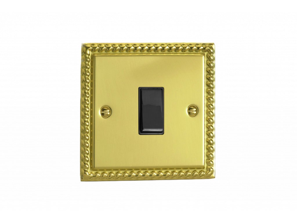 Kolébkový vypínač ROCKER - 1-modulový 10A 1-pólový zvonkový KLASICKÉ - leštěná mosaz / černá kolébka