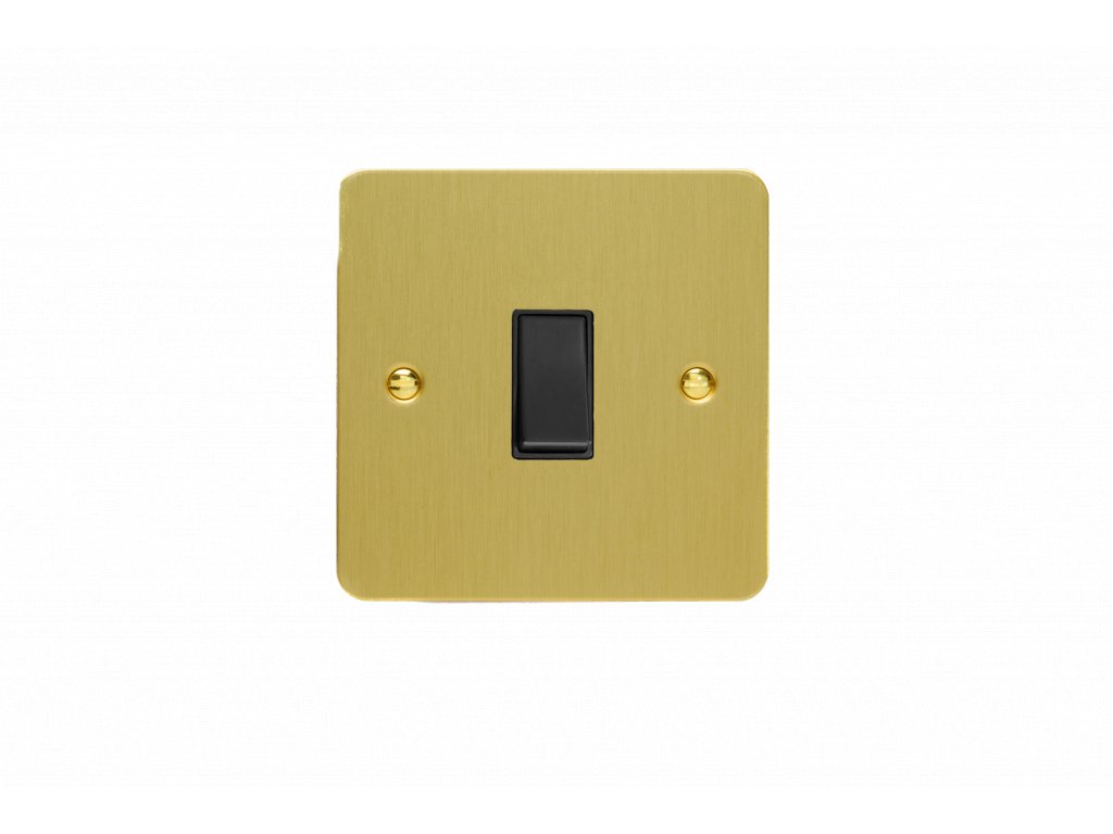 Kolébkový vypínaè ROCKER - 1-modulový 10A 1-pólový zvonkový ULTRAPLOCHÉ - kartáèovaná mosaz / èerná kolébka