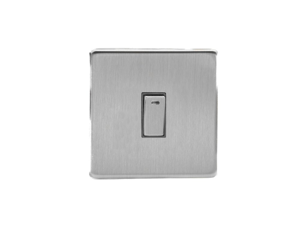 Kolébkový vypínač ROCKER - 1-modulový 20A 2-pólový BEZŠROUBKOVÉ - kartáčovaná ocel / ocelová kolébka