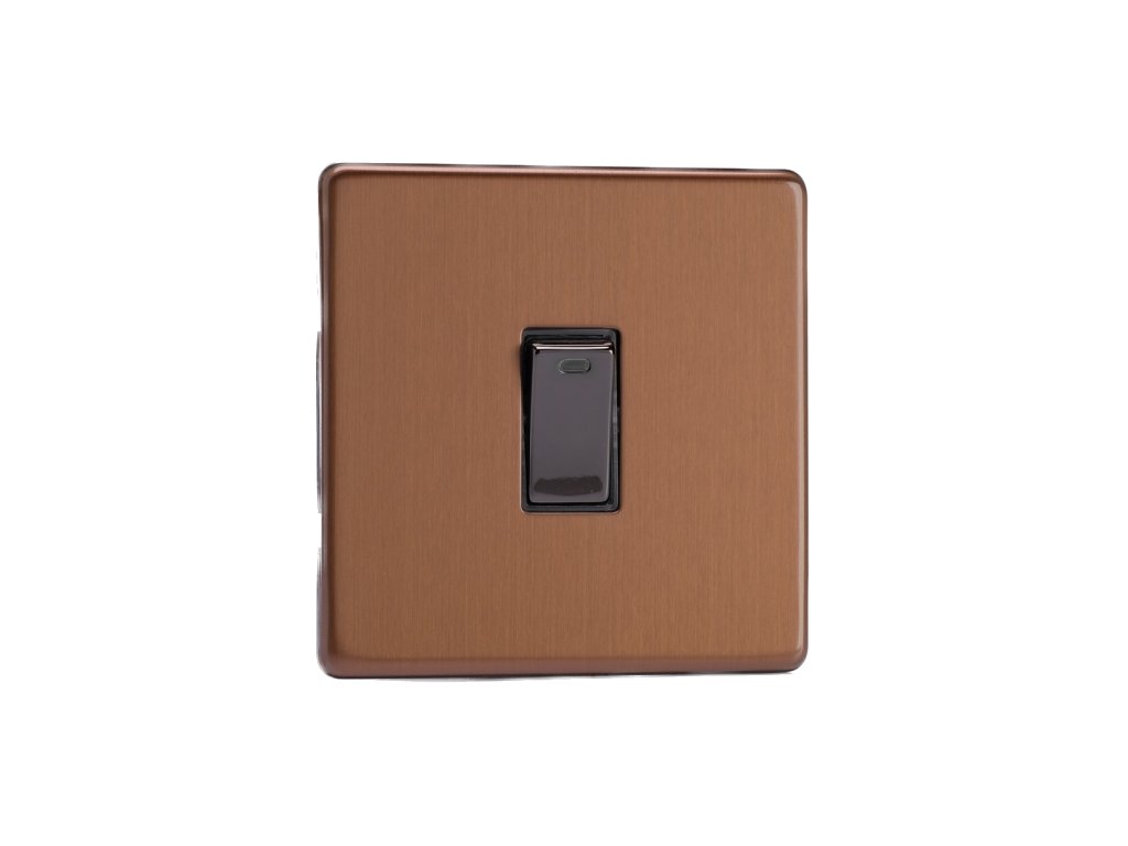 Kolébkový vypínač ROCKER - 1-modulový 20A 2-pólový BEZŠROUBKOVÉ - kartáčovaný bronz / černé (lesklé) iridium