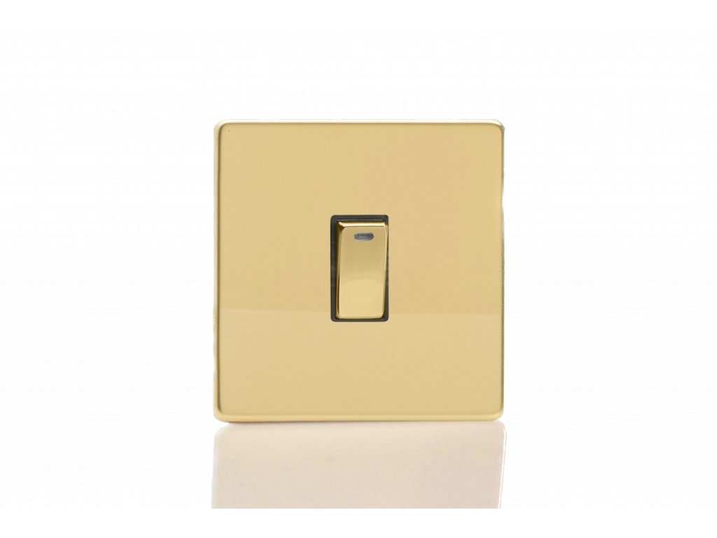 Kolébkový vypínač ROCKER - 1-modulový 20A 2-pólový BEZŠROUBKOVÉ - leštěná mosaz / mosazná kolébka