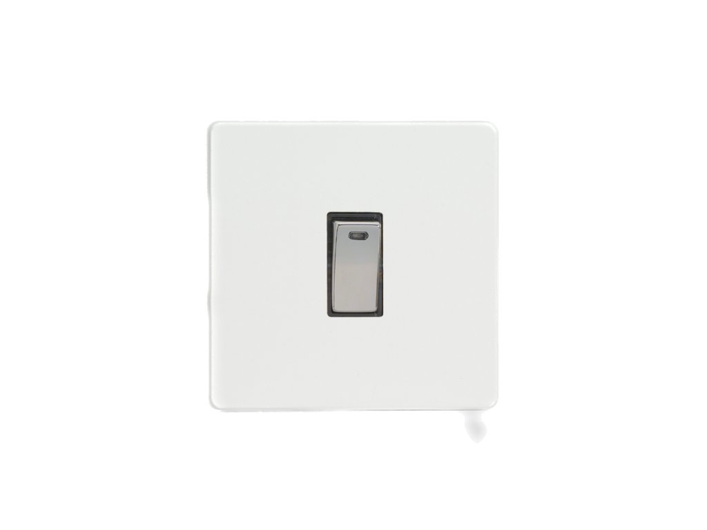 Kolébkový vypínaè ROCKER - 1-modulový 20A 2-pólový BEZROUBKOVÉ - prémiová bílá / chromová kolébka