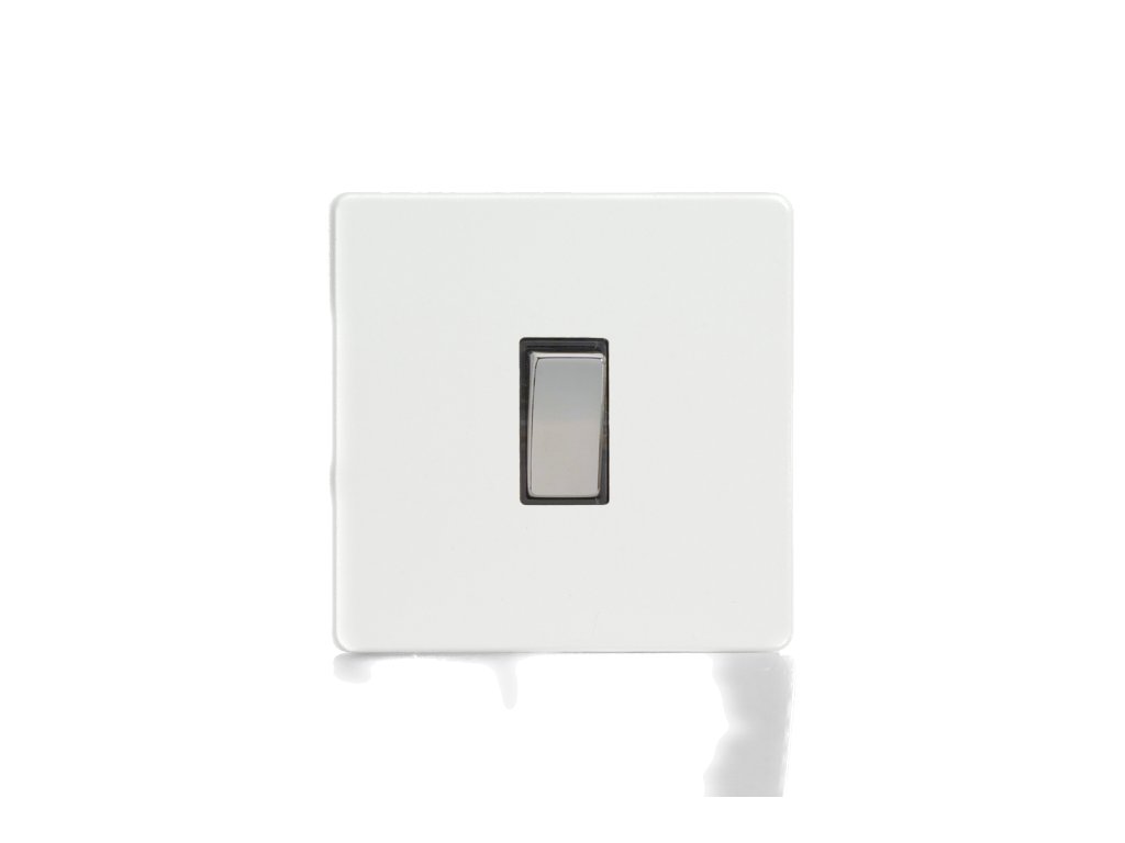 Kolébkový vypínaè ROCKER - 1-modulový 20A 2-pólový BEZROUBKOVÉ - prémiová bílá / chromová kolébka