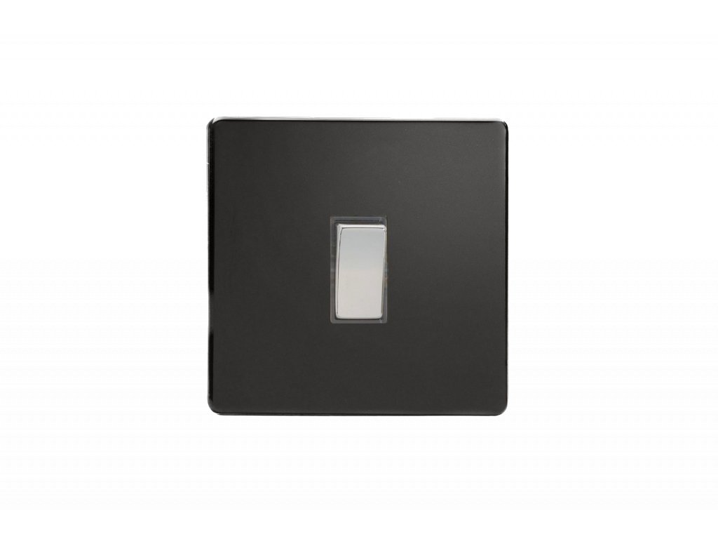 Kolébkový vypínač ROCKER - 1-modulový 20A 2-pólový BEZŠROUBKOVÉ - prémiová černá / chromová kolébka