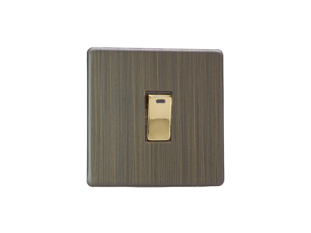 Kolébkový vypínaè ROCKER - 1-modulový 20A 2-pólový BEZROUBKOVÉ - staroitná mosaz / mosaz