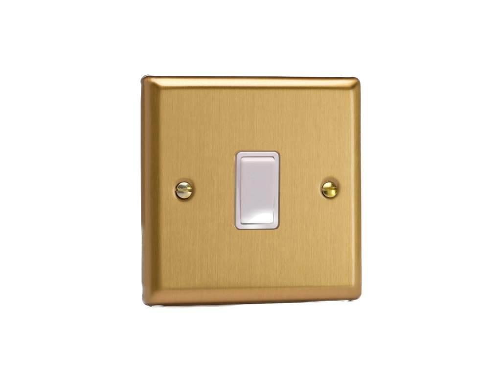 Kolébkový vypínač ROCKER - 1-modulový 20A 2-pólový KLASICKÉ - kartáčovaná mosaz / bílá kolébka