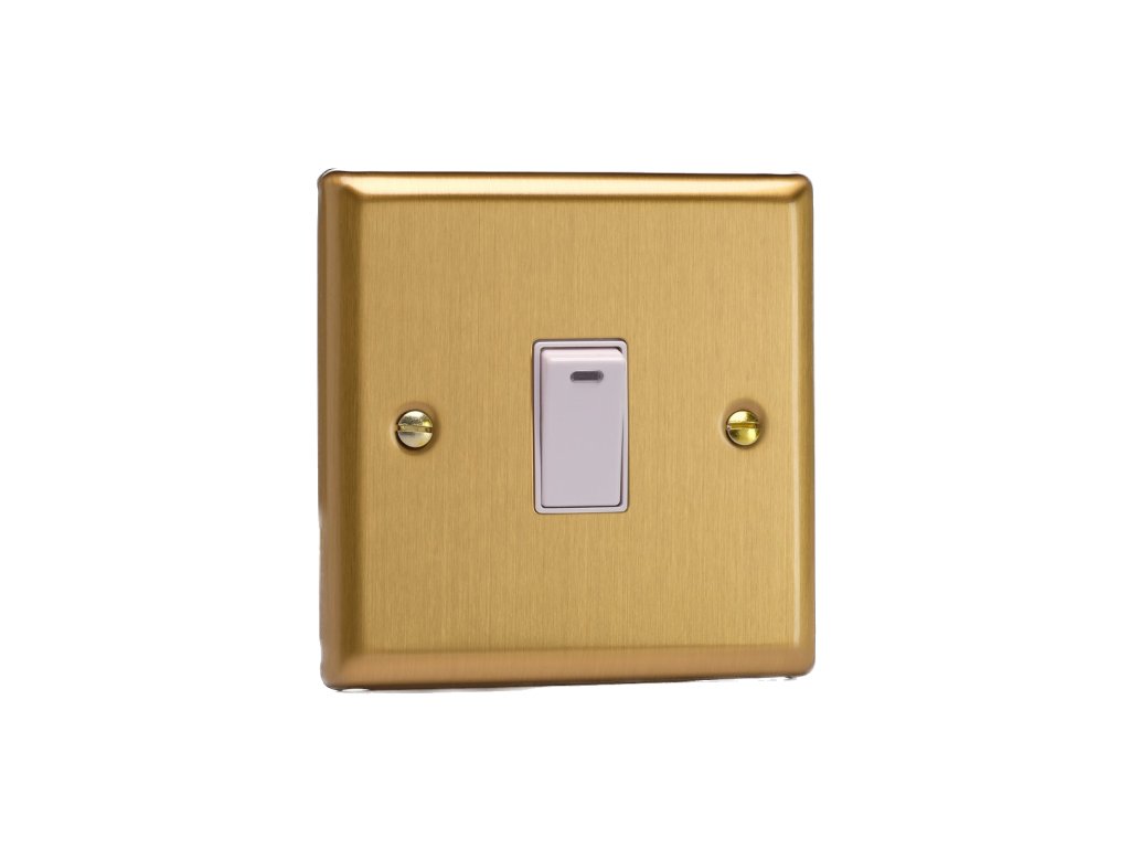 Kolébkový vypínač ROCKER - 1-modulový 20A 2-pólový KLASICKÉ - kartáčovaná mosaz / bílá kolébka