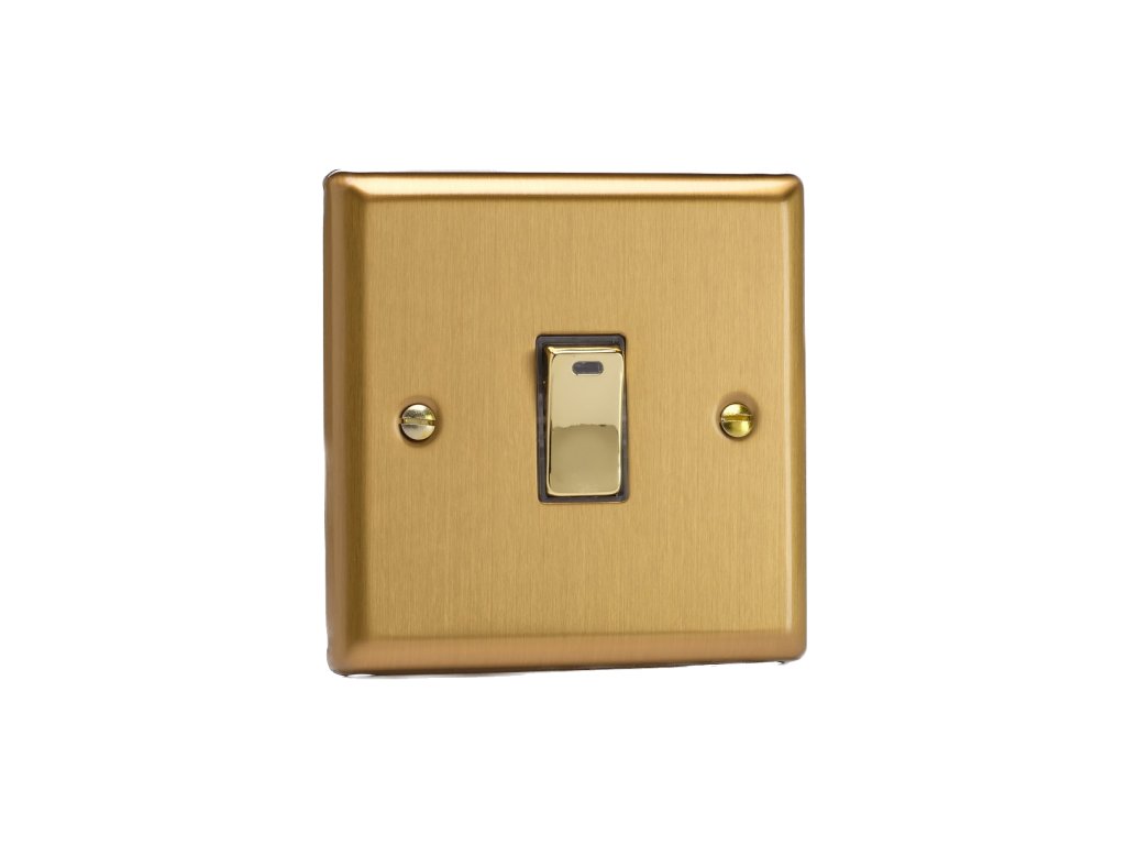 Kolébkový vypínač ROCKER - 1-modulový 20A 2-pólový KLASICKÉ - kartáčovaná mosaz / mosazná kolébka