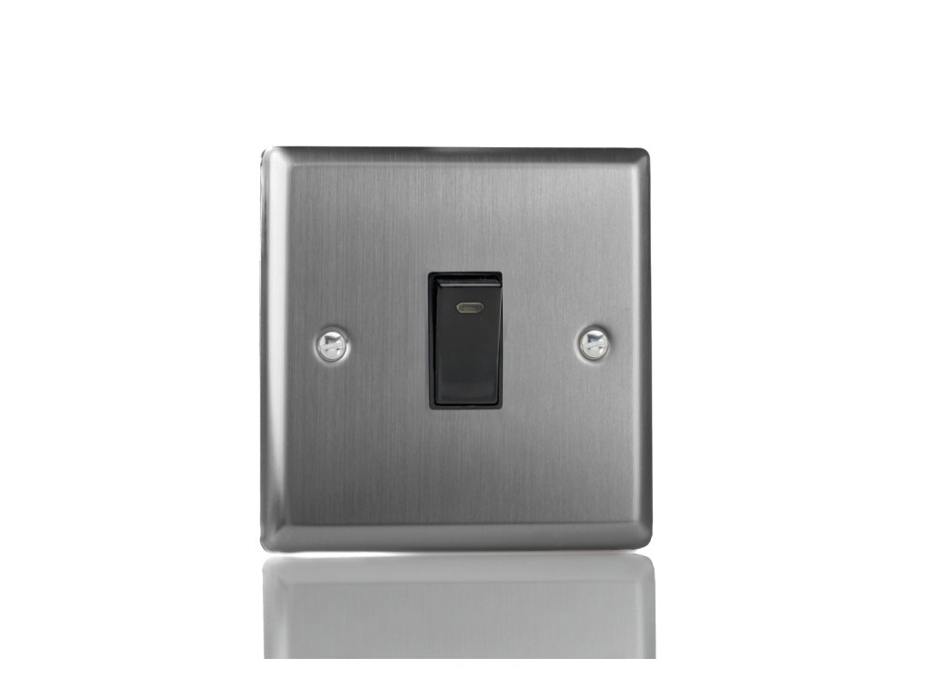 Kolébkový vypínaè ROCKER - 1-modulový 20A 2-pólový KLASICKÉ - kartáèovaná ocel / èerná kolébka