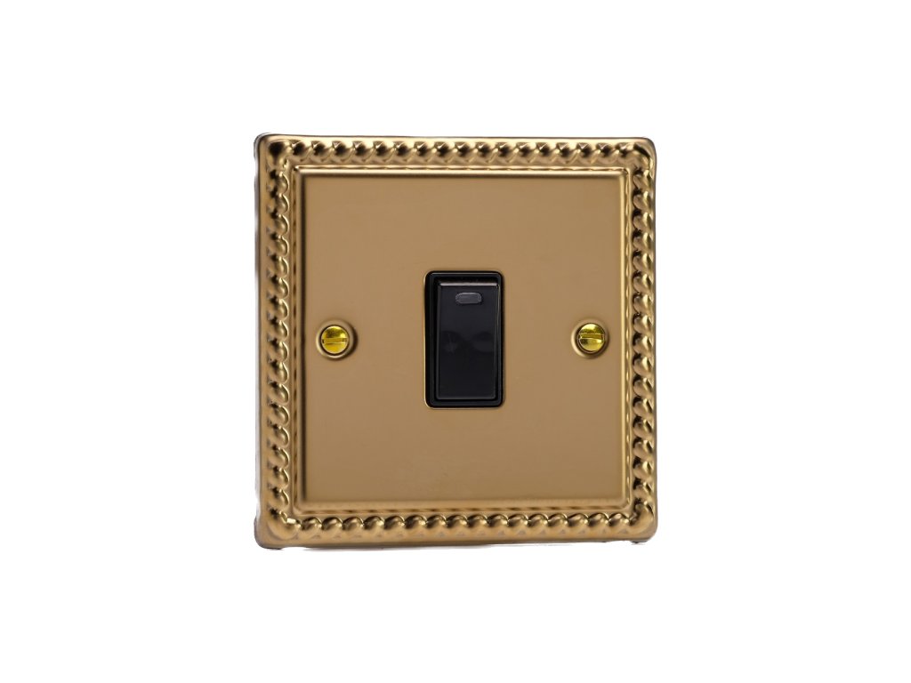 Kolébkový vypínaè ROCKER - 1-modulový 20A 2-pólový KLASICKÉ - letìná mosaz / èerná kolébka
