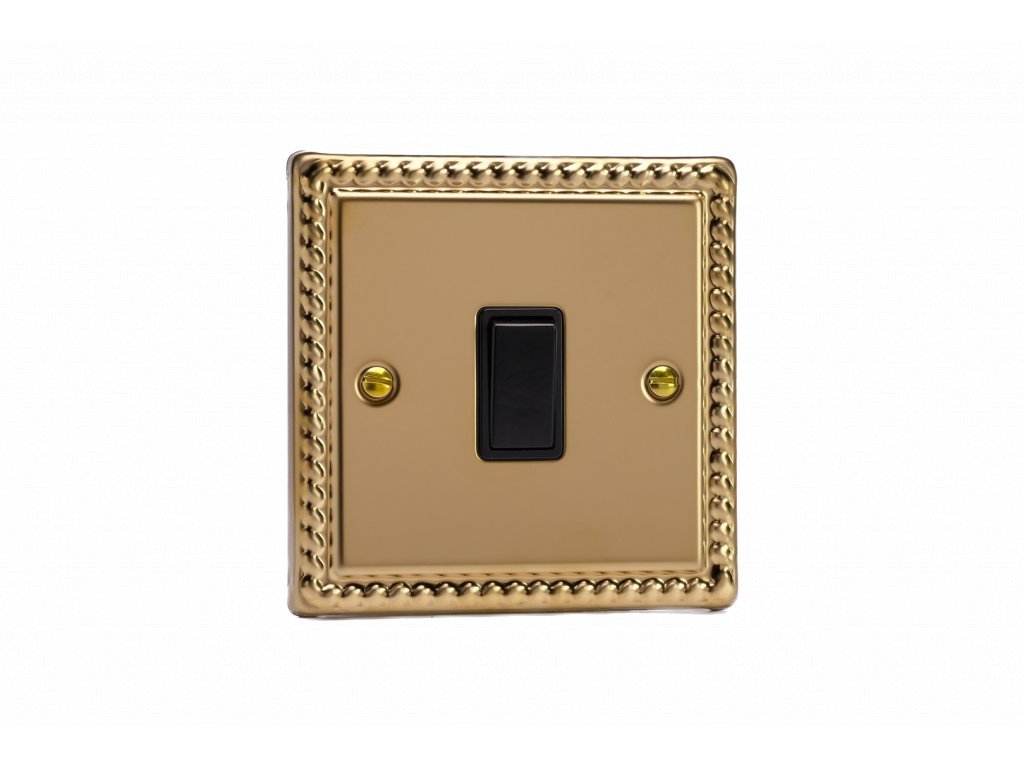 Kolébkový vypínač ROCKER - 1-modulový 20A 2-pólový KLASICKÉ - leštěná mosaz / černá kolébka