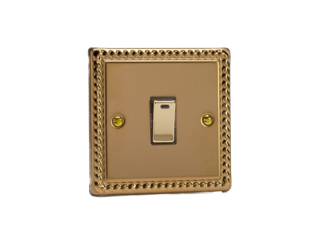Kolébkový vypínač ROCKER - 1-modulový 20A 2-pólový KLASICKÉ - leštěná mosaz / mosazná kolébka