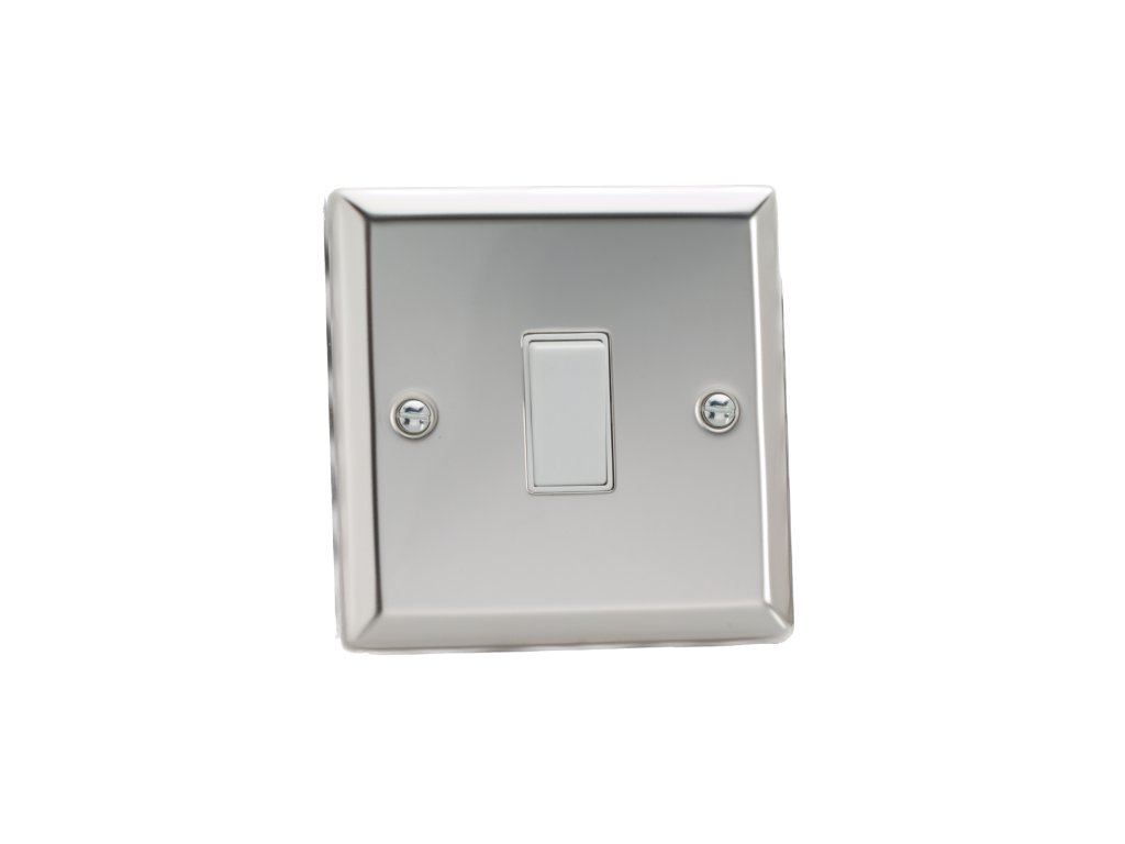 Kolébkový vypínaè ROCKER - 1-modulový 20A 2-pólový KLASICKÉ - letìný chrom / bílá kolébka