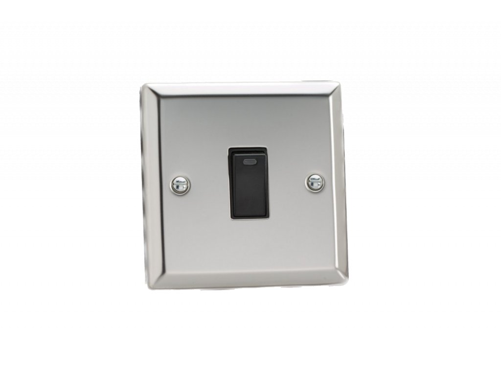 Kolébkový vypínač ROCKER - 1-modulový 20A 2-pólový KLASICKÉ - leštěný chrom / černá kolébka