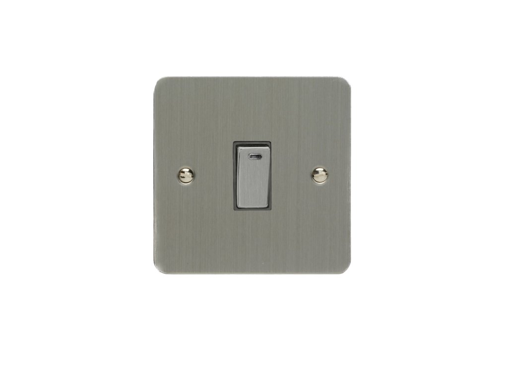 Kolébkový vypínač ROCKER - 1-modulový 20A 2-pólový ULTRAPLOCHÉ - kartáčovaná ocel / ocelová kolébka