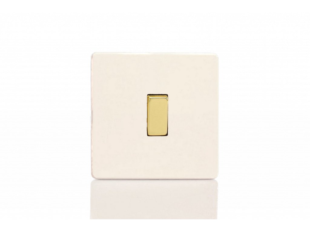 Kolébkový vypínač ROCKER - 1-modulový křížový (č.7) 10A 1-pólový BEZŠROUBKOVÉ - matně bílá / mosazné kolébky
