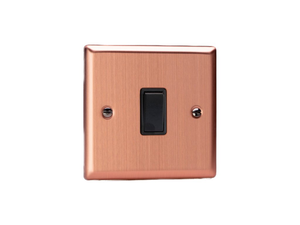Kolébkový vypínaè ROCKER - 1-modulový køíový (è.7) 10A 1-pólový KLASICKÉ - kartáèovaná mìï / èerná kolébka