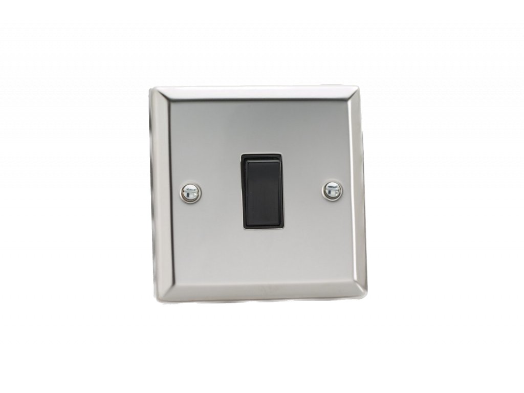 Kolébkový vypínaè ROCKER - 1-modulový køíový (è.7) 10A 1-pólový KLASICKÉ - letìný chrom / èerná kolébka