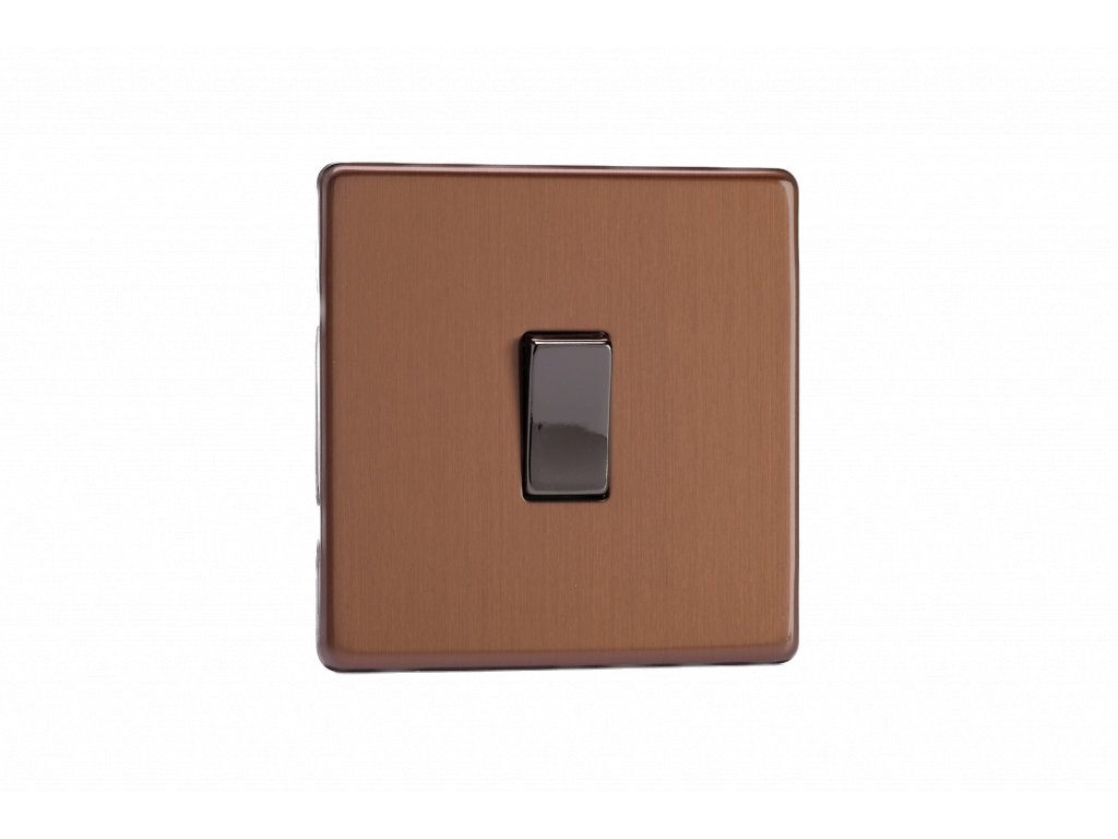 Kolébkový vypínač ROCKER - 1-modulový schodišťový (č.6); jednosměrný (č.1) 10A 1-pólový BEZŠROUBKOVÉ - kartáčovaný bronz / černé (lesklé) iridium