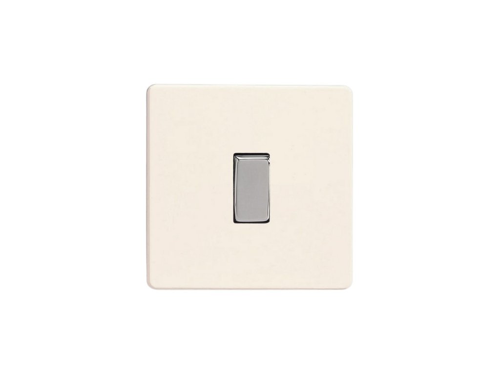 Kolébkový vypínaè ROCKER - 1-modulový schodiový (è.6); jednosmìrný (è.1) 10A 1-pólový BEZROUBKOVÉ - matnì bílá / chromová kolébka