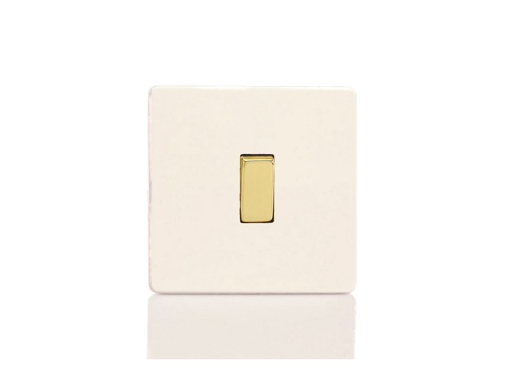 Kolébkový vypínaè ROCKER - 1-modulový schodiový (è.6); jednosmìrný (è.1) 10A 1-pólový BEZROUBKOVÉ - matnì bílá / mosazná kolébka