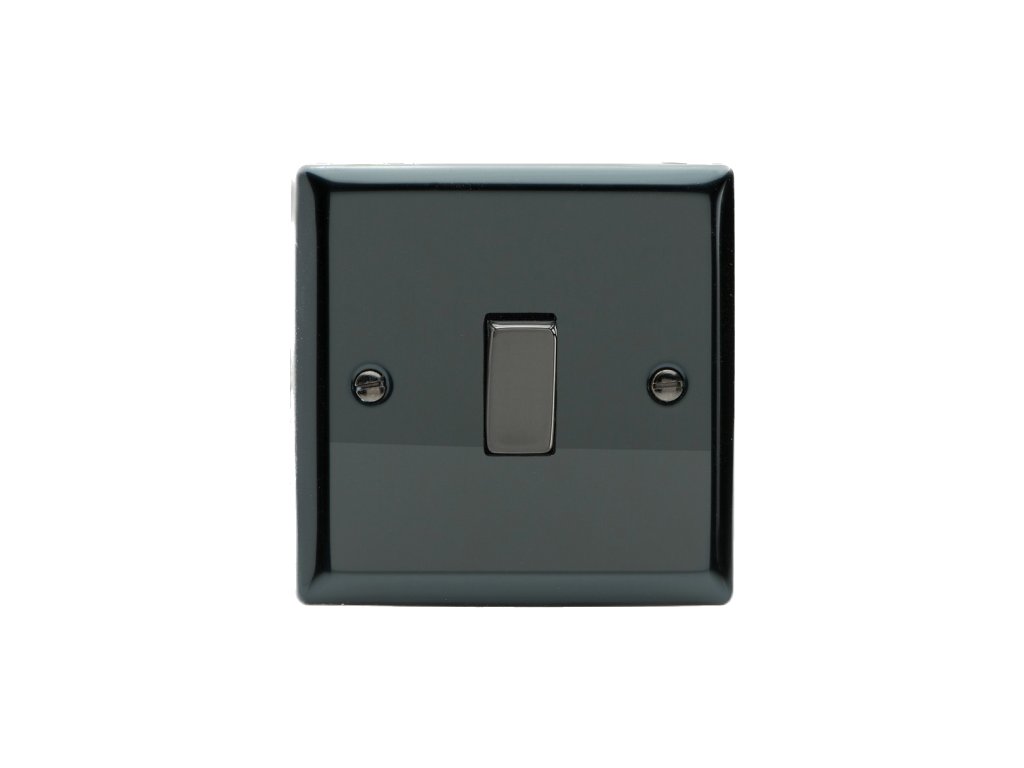 Kolébkový vypínač ROCKER - 1-modulový schodišťový (č.6); jednosměrný (č.1) 10A 1-pólový KLASICKÉ - černé (lesklé) iridium / černé (lesklé) iridium