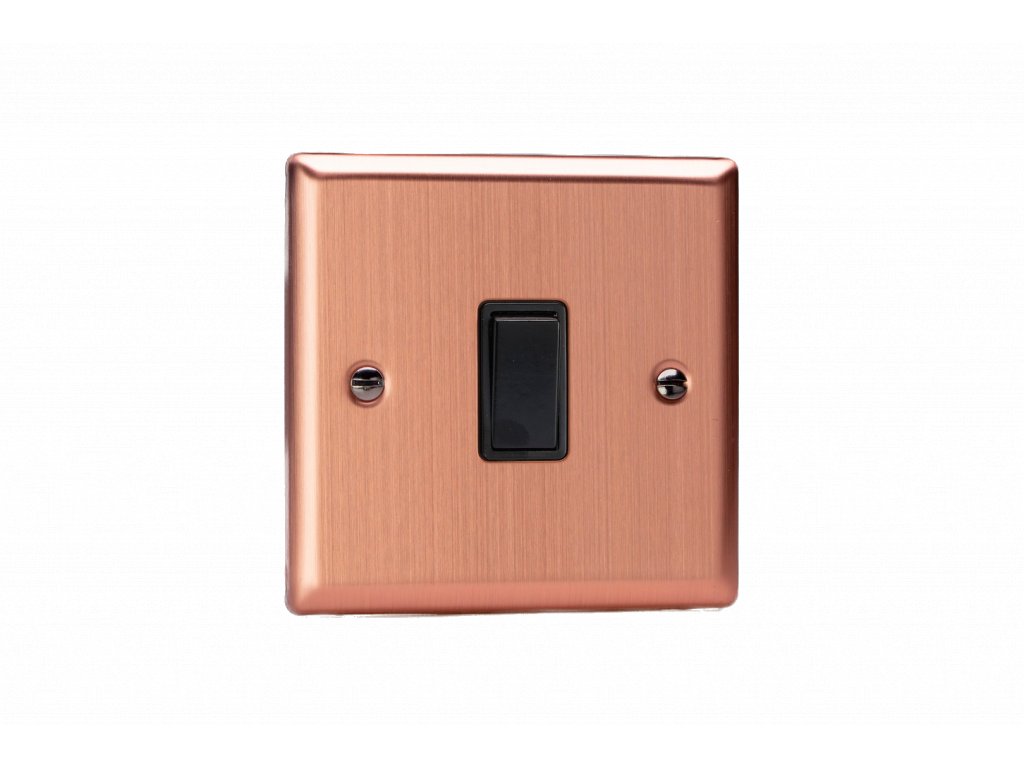 Kolébkový vypínač ROCKER - 1-modulový schodišťový (č.6); jednosměrný (č.1) 10A 1-pólový KLASICKÉ - kartáčovaná měď / černá kolébka
