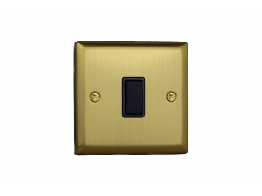 Kolébkový vypínaè ROCKER - 1-modulový schodiový (è.6); jednosmìrný (è.1) 10A 1-pólový KLASICKÉ - kartáèovaná mosaz / èerná kolébka