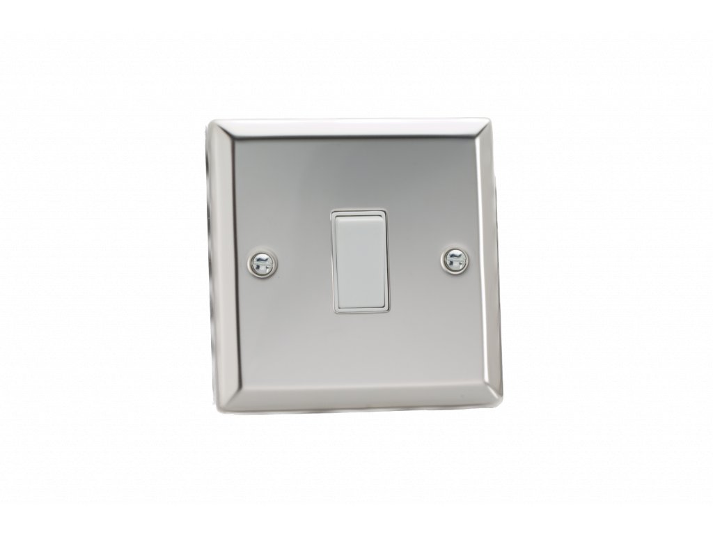 Kolébkový vypínaè ROCKER - 1-modulový schodiový (è.6); jednosmìrný (è.1) 10A 1-pólový KLASICKÉ - letìný chrom / bílá kolébka