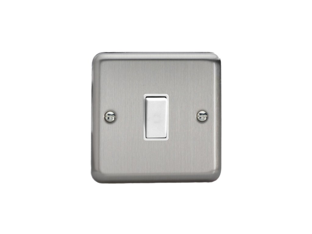 Kolébkový vypínaè ROCKER - 1-modulový schodiový (è.6); jednosmìrný (è.1) 10A 1-pólový KLASICKÉ - matnì chromová / bílá kolébka