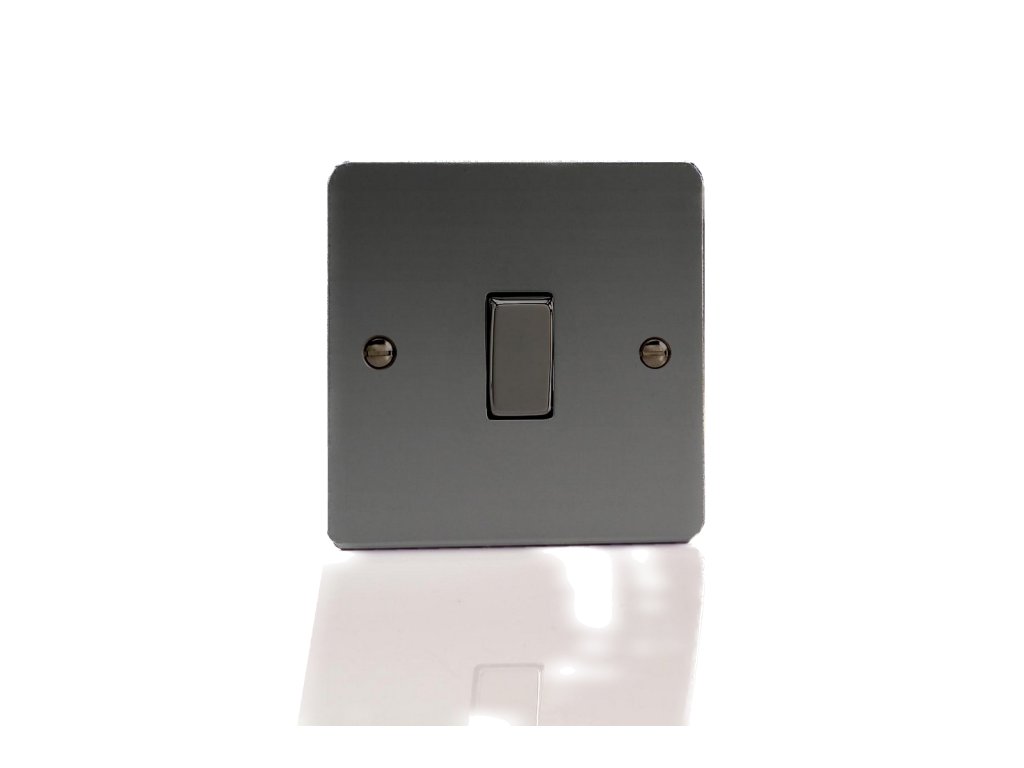 Kolébkový vypínač ROCKER - 1-modulový schodišťový (č.6); jednosměrný (č.1) 10A 1-pólový ULTRAPLOCHÉ - černé (lesklé) iridium / černé (lesklé) iridium