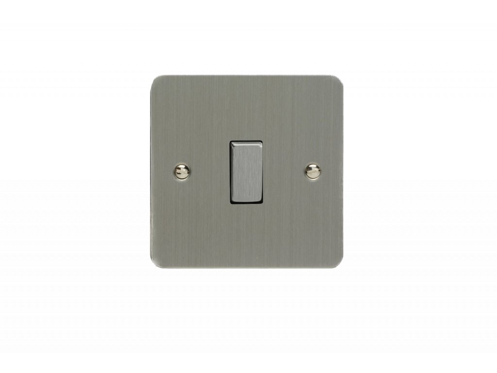 Kolébkový vypínač ROCKER - 1-modulový schodišťový (č.6); jednosměrný (č.1) 10A 1-pólový ULTRAPLOCHÉ - kartáčovaná ocel / ocelová kolébka