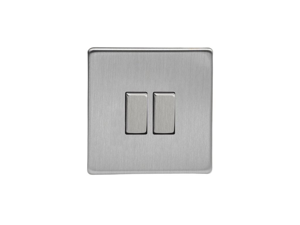 Kolébkový vypínač ROCKER - 2-modulový křížový (č.7) 10A 1-pólový BEZŠROUBKOVÉ - kartáčovaná ocel / ocelové kolébky